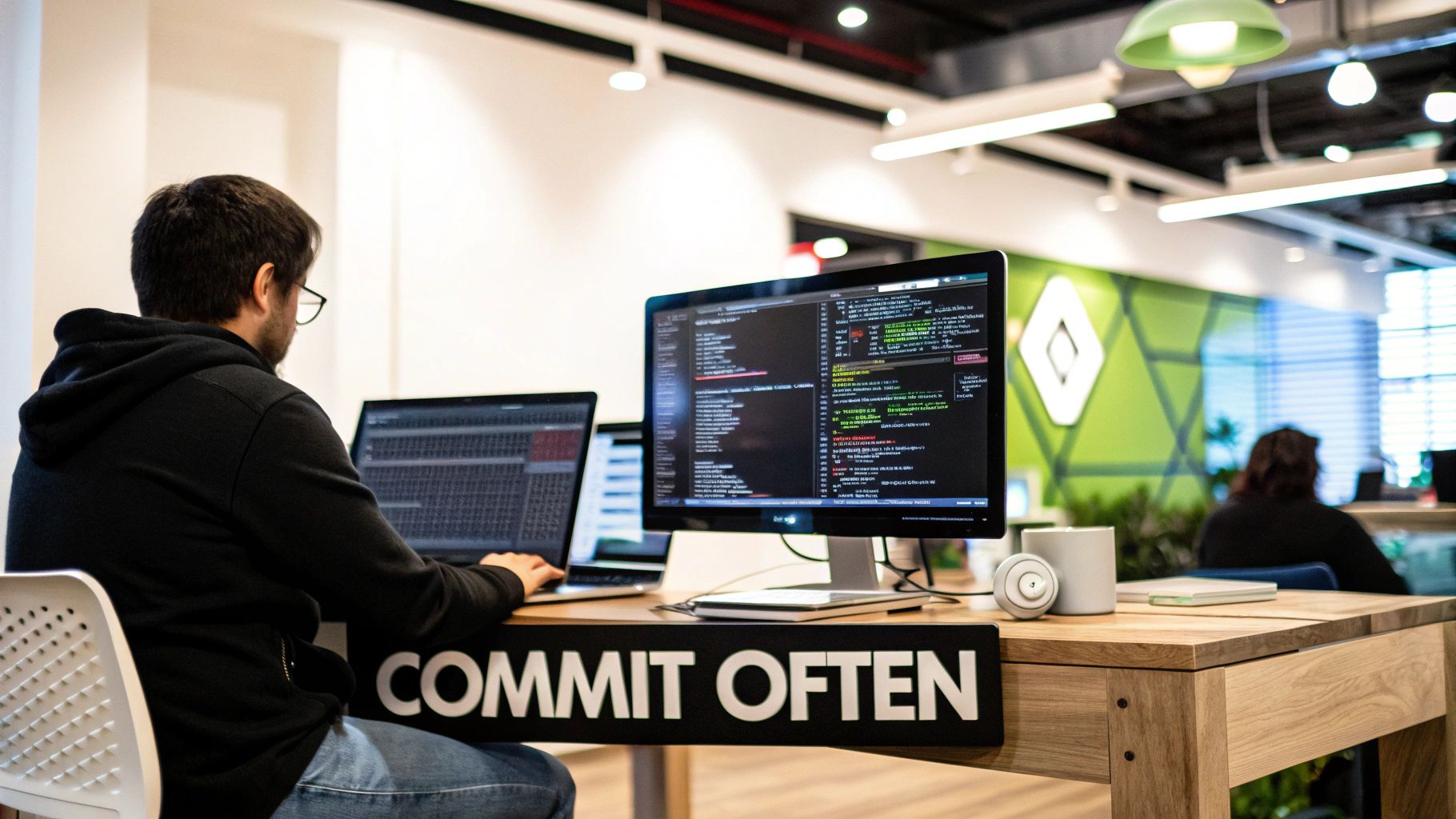 This practice directly minimizes the risk of complex merge conflicts, often referred to as "merge hell," and ensures that integration issues are identified almost immediately. When every developer on a team commits small changes several times a day, the shared codebase evolves incrementally, making it far simpler to pinpoint the exact change that introduced a bug. This rapid feedback loop is a foundational element of agile development and one of the most critical continuous integration best practices for maintaining a healthy and stable main branch.