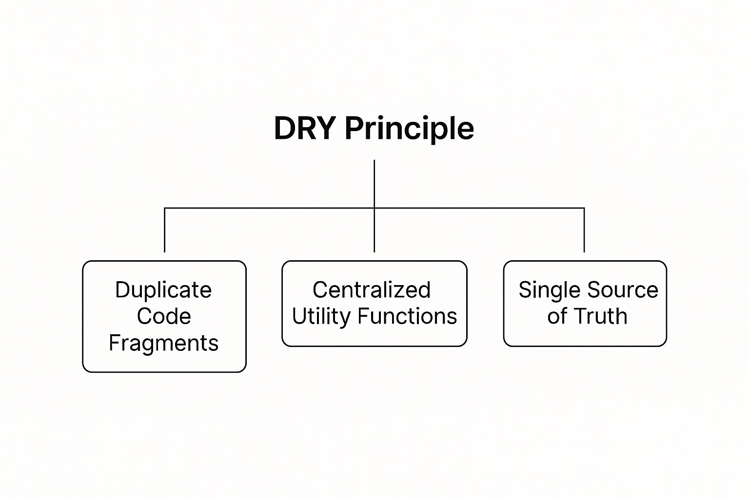 The DRY (Don't Repeat Yourself) principle is probably the one you've heard the most. Its core idea is that every piece of logic in a system should exist in only one place. Think about it like this: if you're sending out party invitations, you don't handwrite a brand-new one for every guest. You create a master template and just fill in the names.