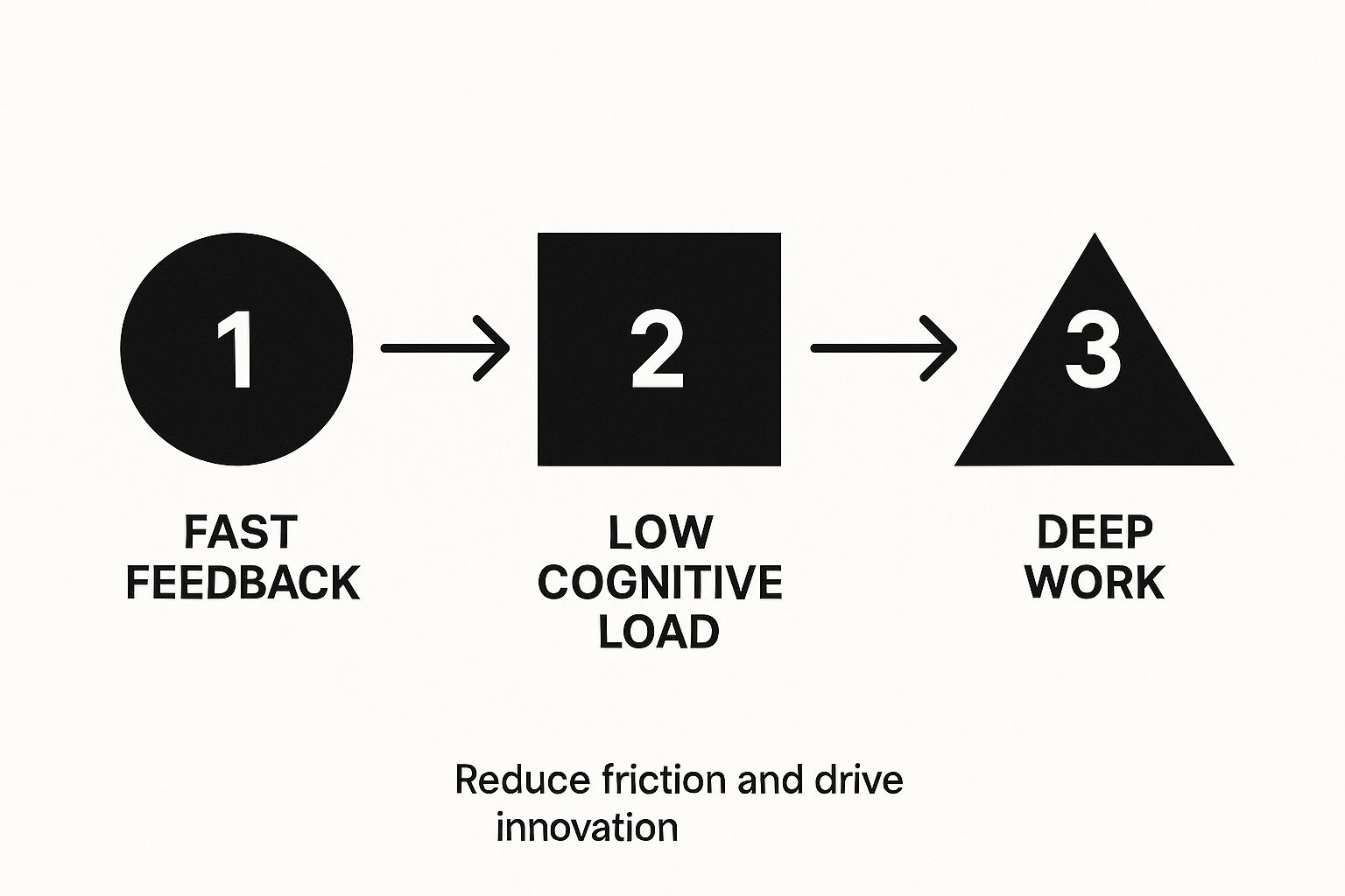 Low Cognitive Load: This is all about minimizing the mental energy spent on anything that isn't coding. Think simple, standardized environments, crystal-clear documentation, and intuitive tools. It lets developers focus their brainpower on solving actual business problems, not fighting their setup.