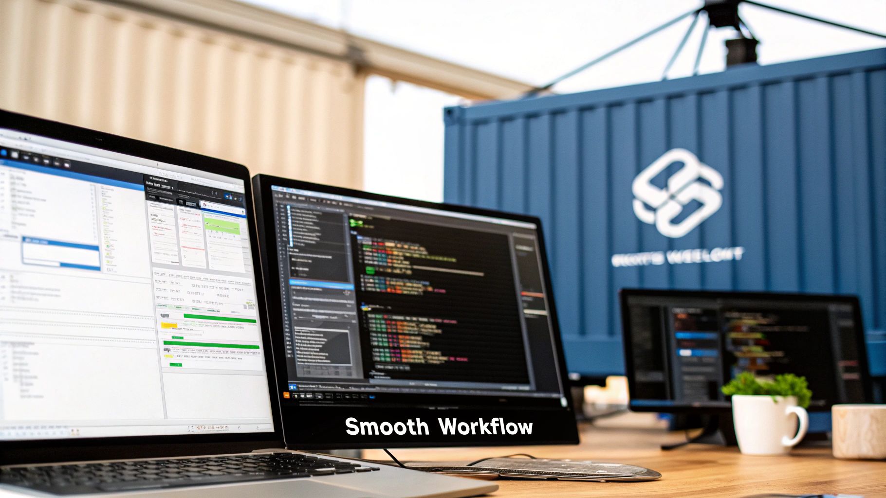 Beyond the code, don't forget the physical environment. Something as simple as creating an ergonomic monitor setup can significantly reduce strain and boost focus. Shaving minutes off these daily, repetitive tasks quickly adds up to hours of focused, high-impact coding time each week. It's all about removing the needless hurdles so your team can spend more time doing what they do best: solving complex problems and building great software.
