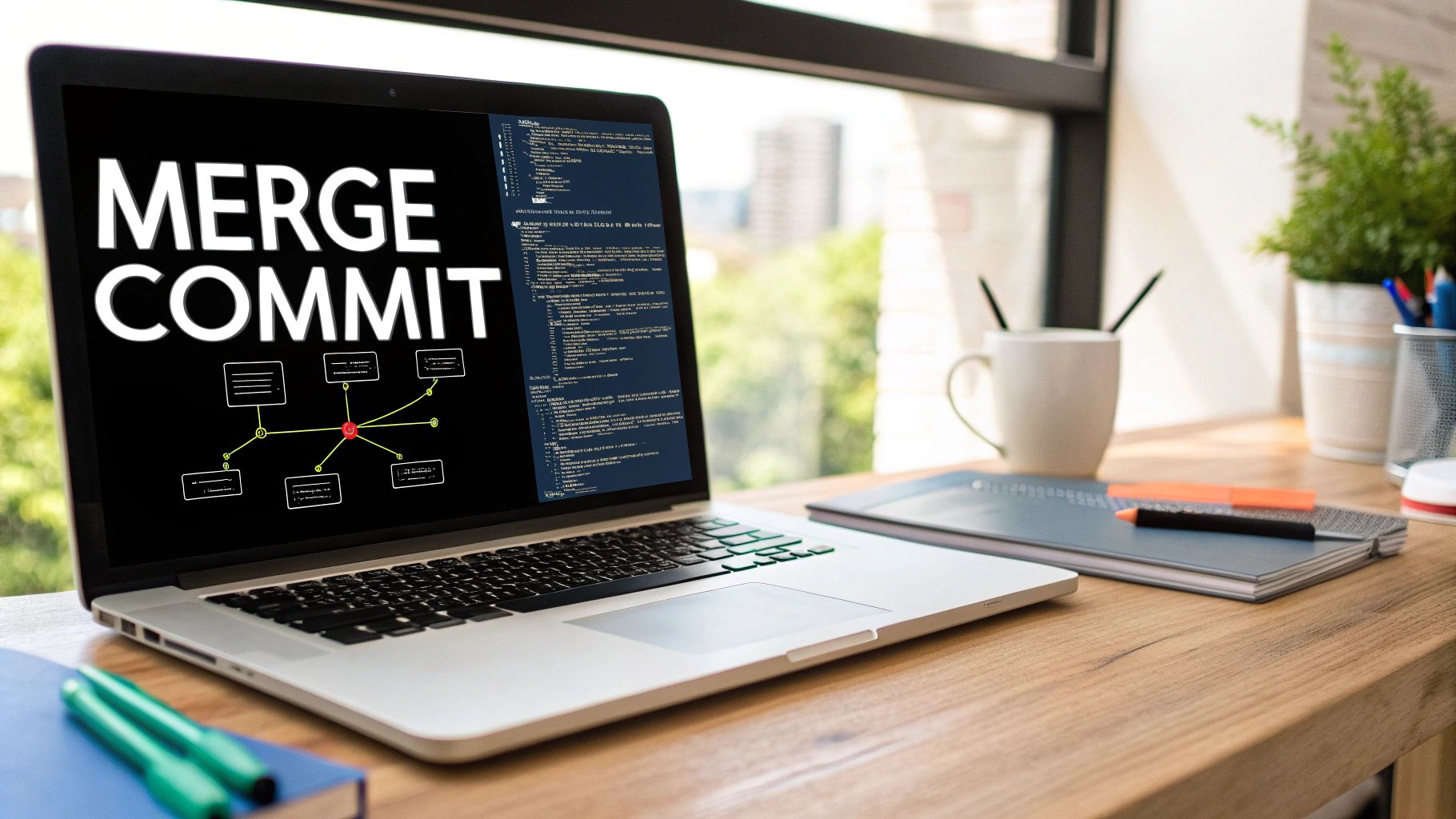 A git merge is like taking two separate threads and tying them together with a new knot—that's your merge commit. It preserves the exact history of both branches, showing all the parallel work just as it happened. It’s transparent and, importantly, non-destructive.