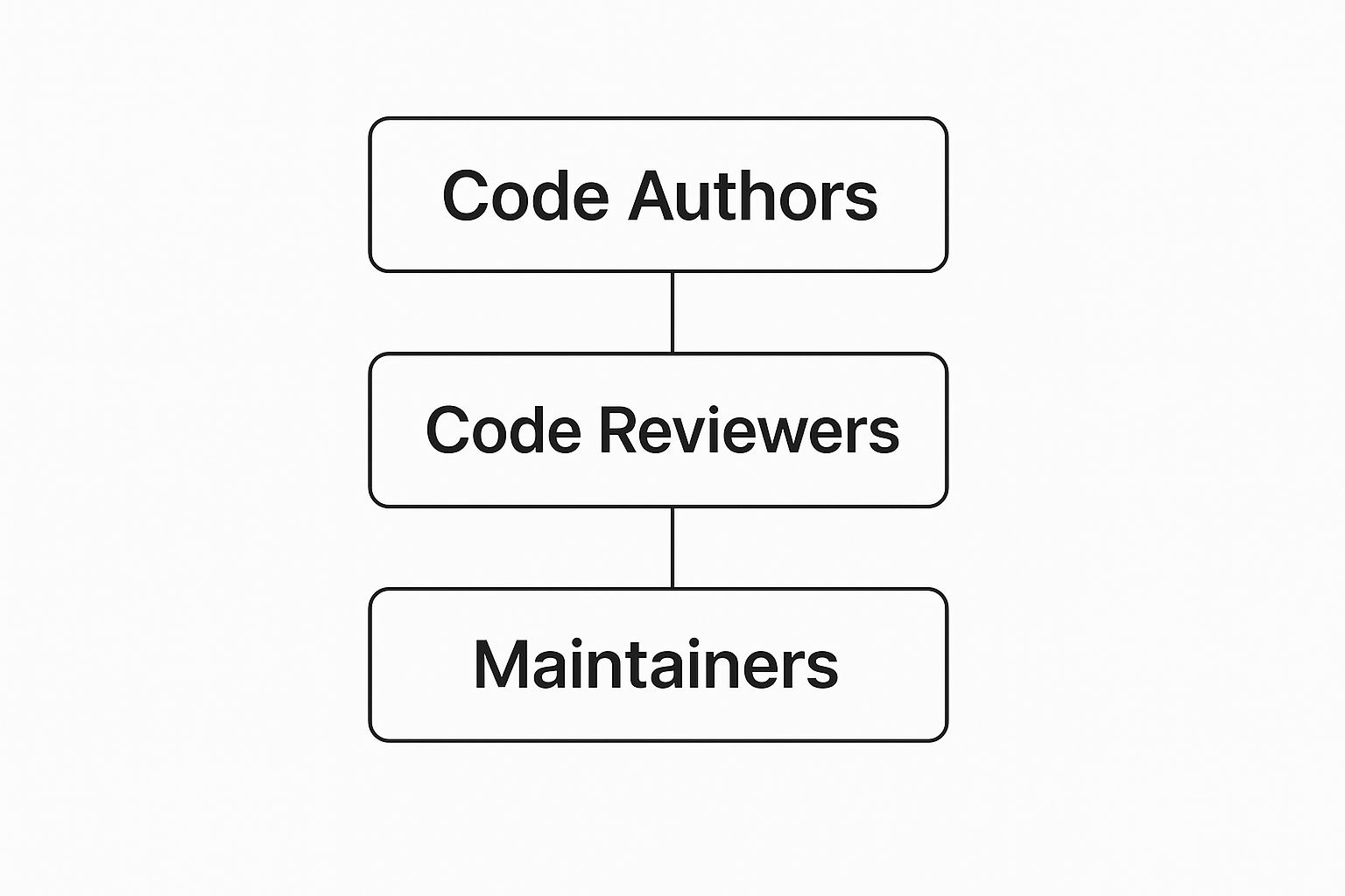 As you can see, authors kick things off with their changes, reviewers jump in with critical feedback, and maintainers have the final say on merging the code. This protects the integrity of the project.