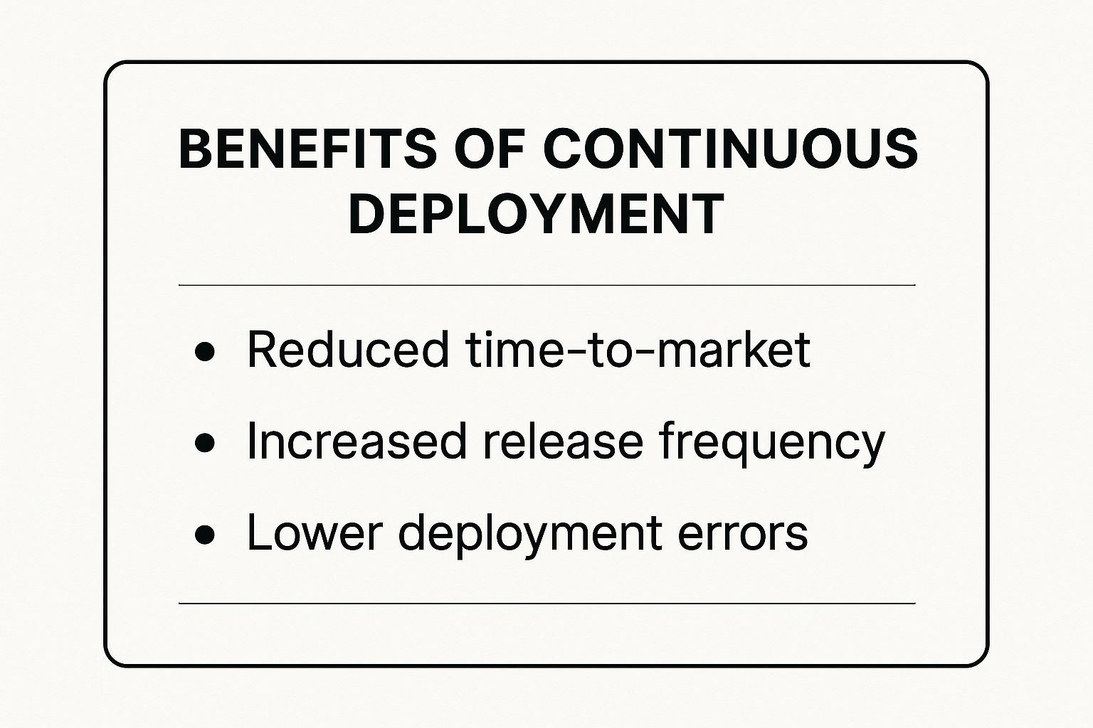 Continuous deployment automates that final step. If the package passes all its quality checks, it’s automatically loaded onto the truck and sent out to the customer—no human intervention required.